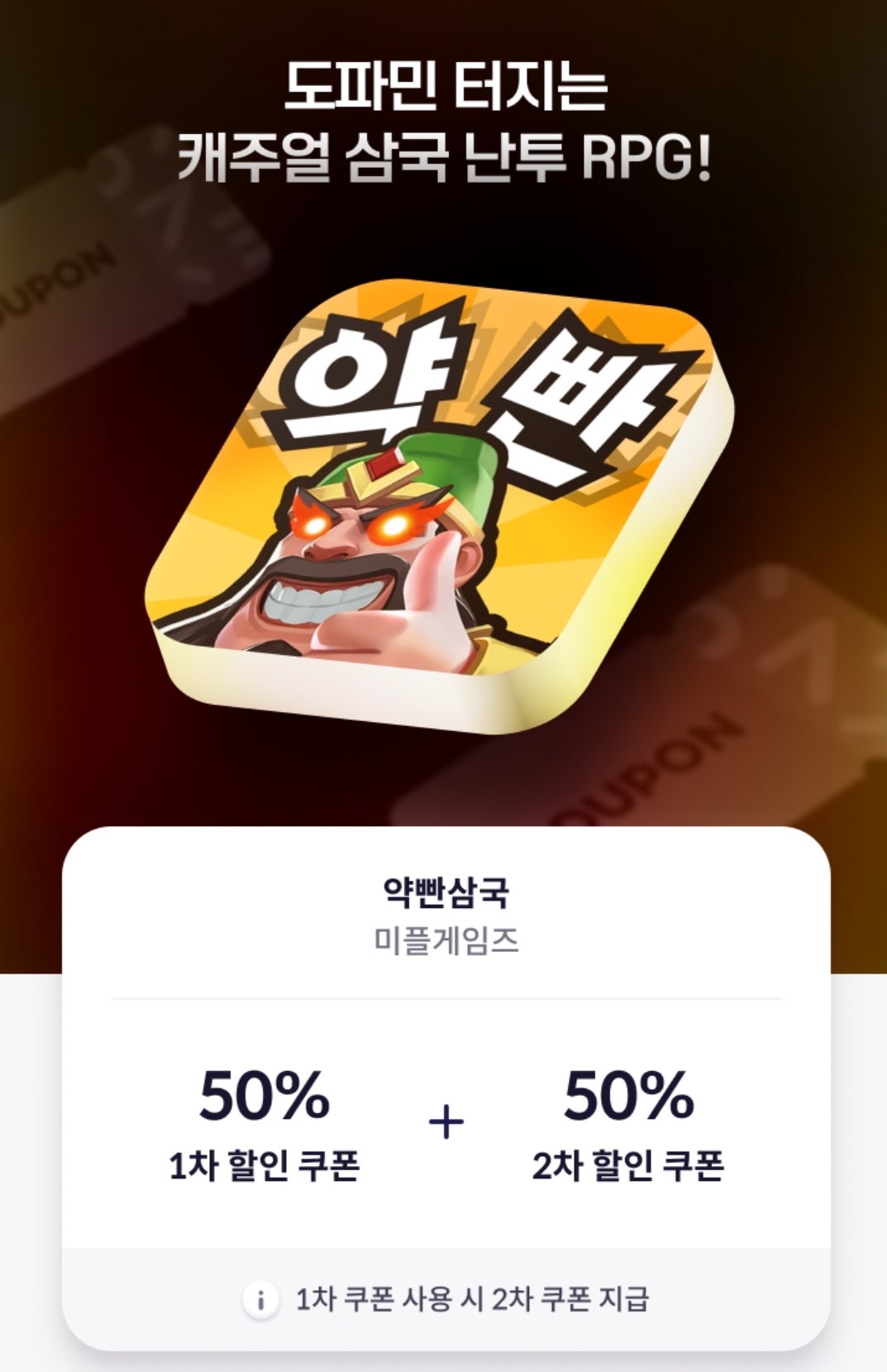 - 원스토어에서 <약빤삼국>을 설치한 분, 쿠폰을 사용하면 다음 차수 쿠폰 바로 지급